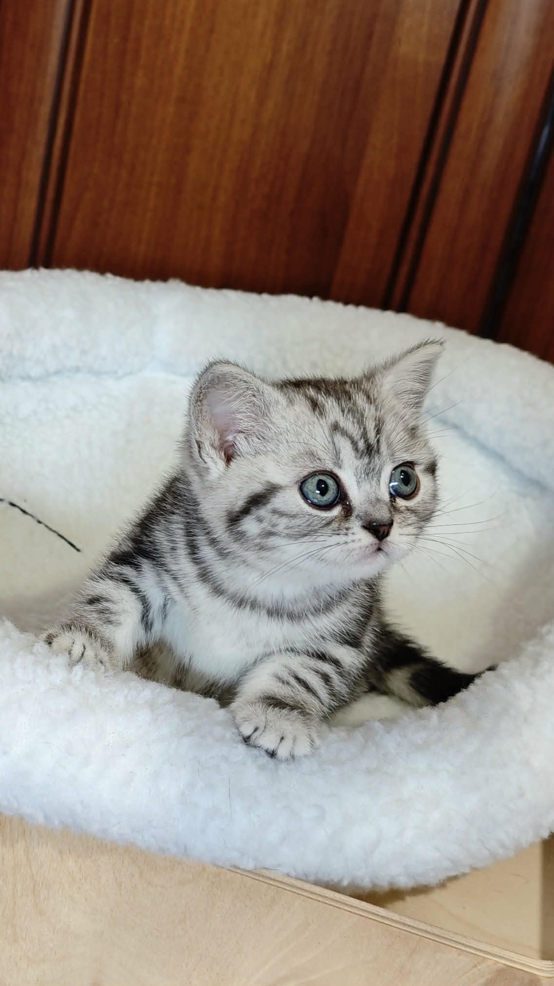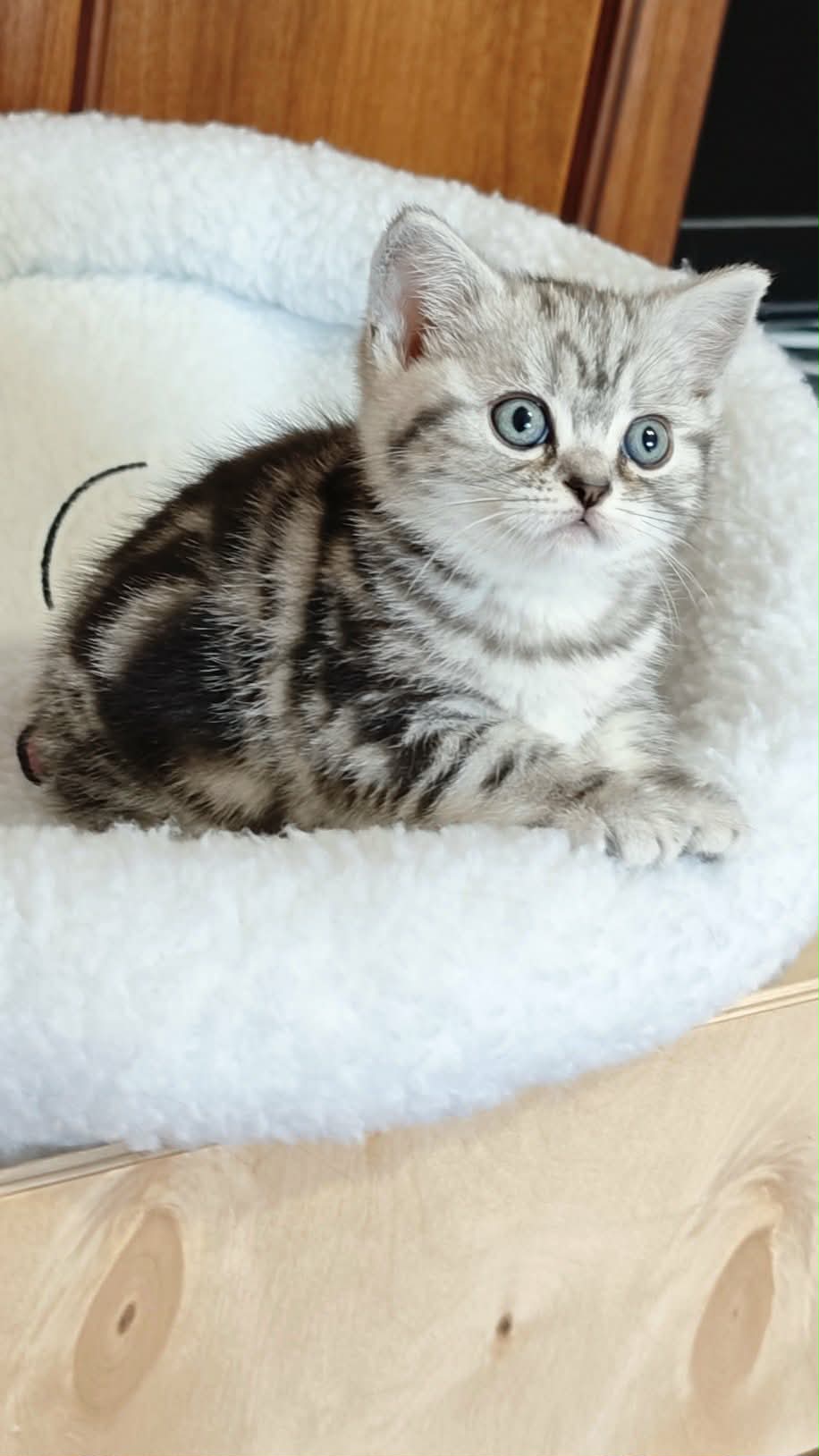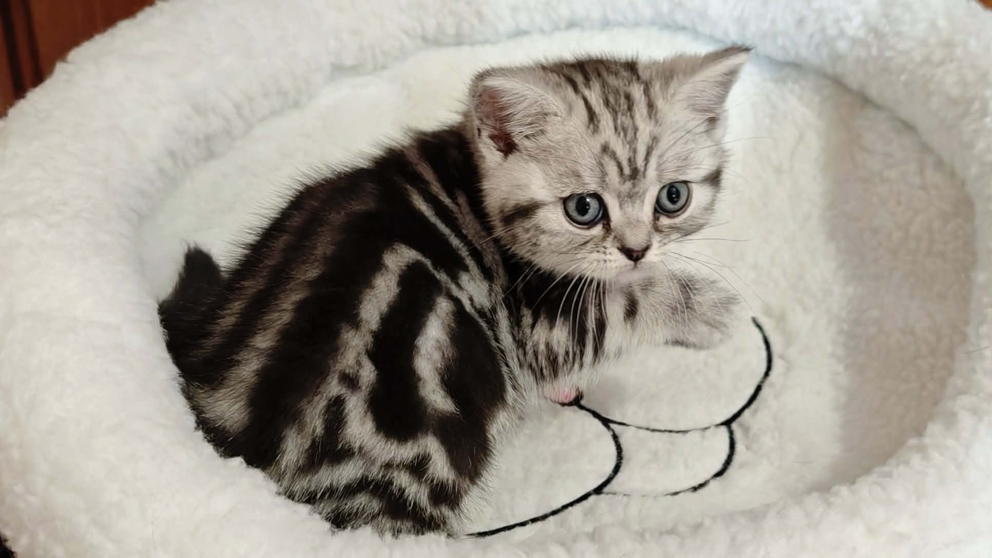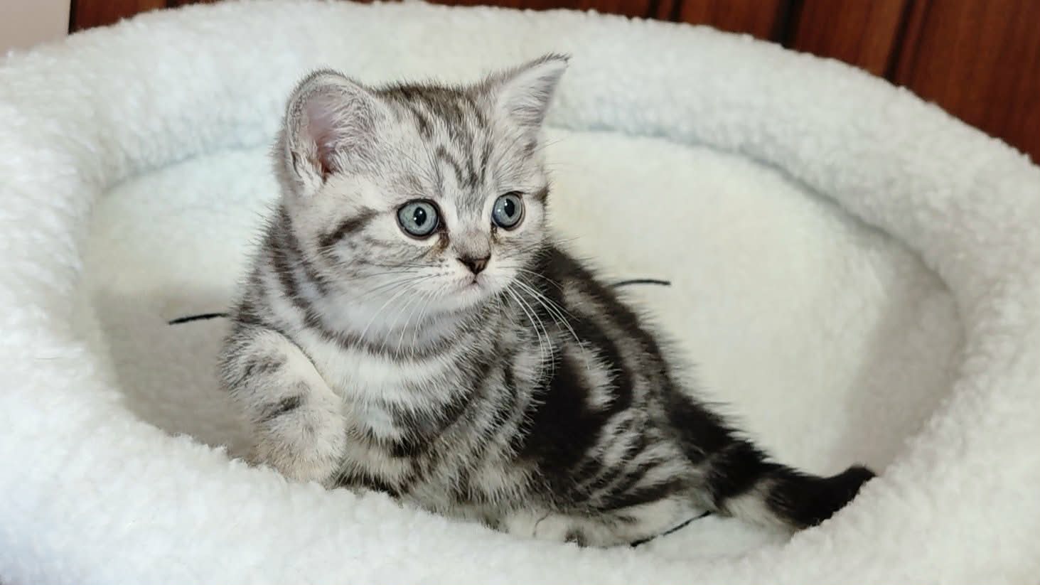 Gyönyörű, nagyon kedves brit rövidszőrű fekete-ezüst klasszikus tabby kislány cica foglalható, június elején költözhet, 2 kombinált oltással, rendszeresen féreghajtózva, chippel, szerződéssel, számlával, kizárólag benti tartásra.