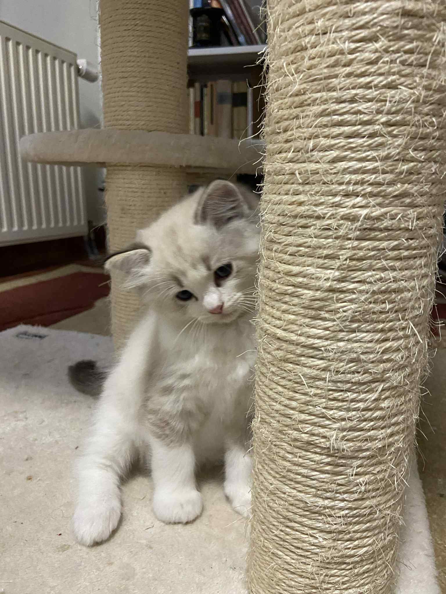Ez a cica egy igazi szeretetgombóc, aki már most is ragaszkodó és játékos. A Ragdoll fajtára jellemzően rendkívül szelíd és barátságos, így tökéletes választás családi házikedvencnek.