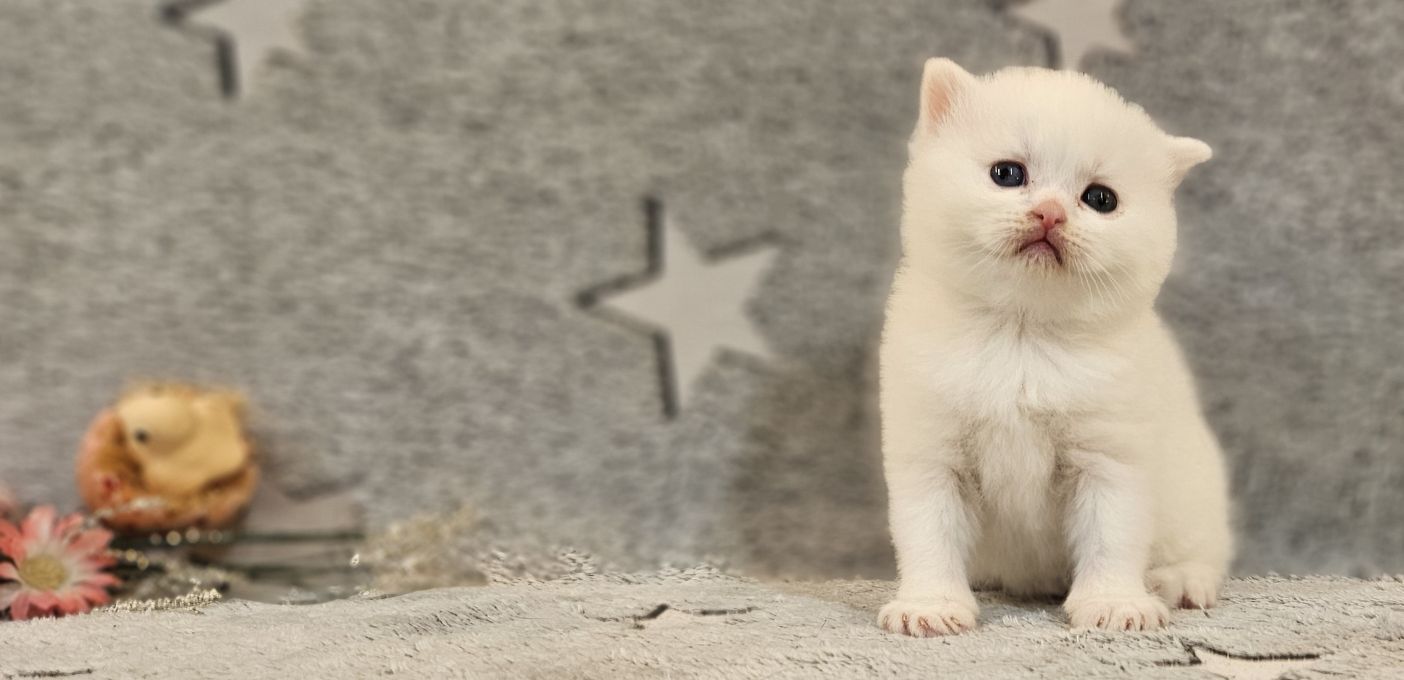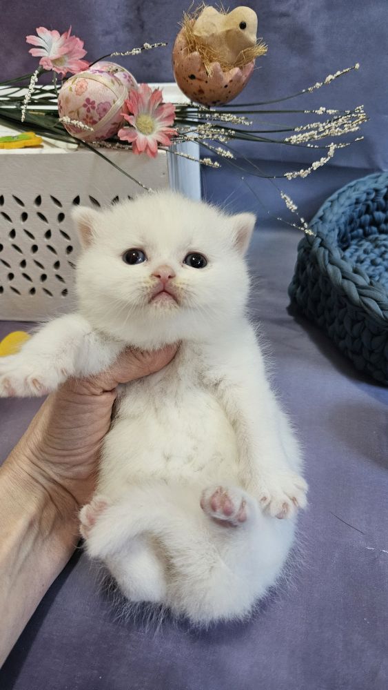 Brit rövidszőrű  felemás szemű hófehér törzskönyves kiscica gyönyörű törzskönyves szülőktől. Leghamarabb 12 hetesen költözhet, oltva,   féreghajtva, chippel, alomra szoktatva, szerződéssel, számlával.   A szülők negatív tesztekkel rendelkeznek.  A cicák lakásban élnek, szabadon , családtagok, szocializáltak. A cica költözésénél a szállításban Szeged-Budapest  útvonalon tudunk segíteni.