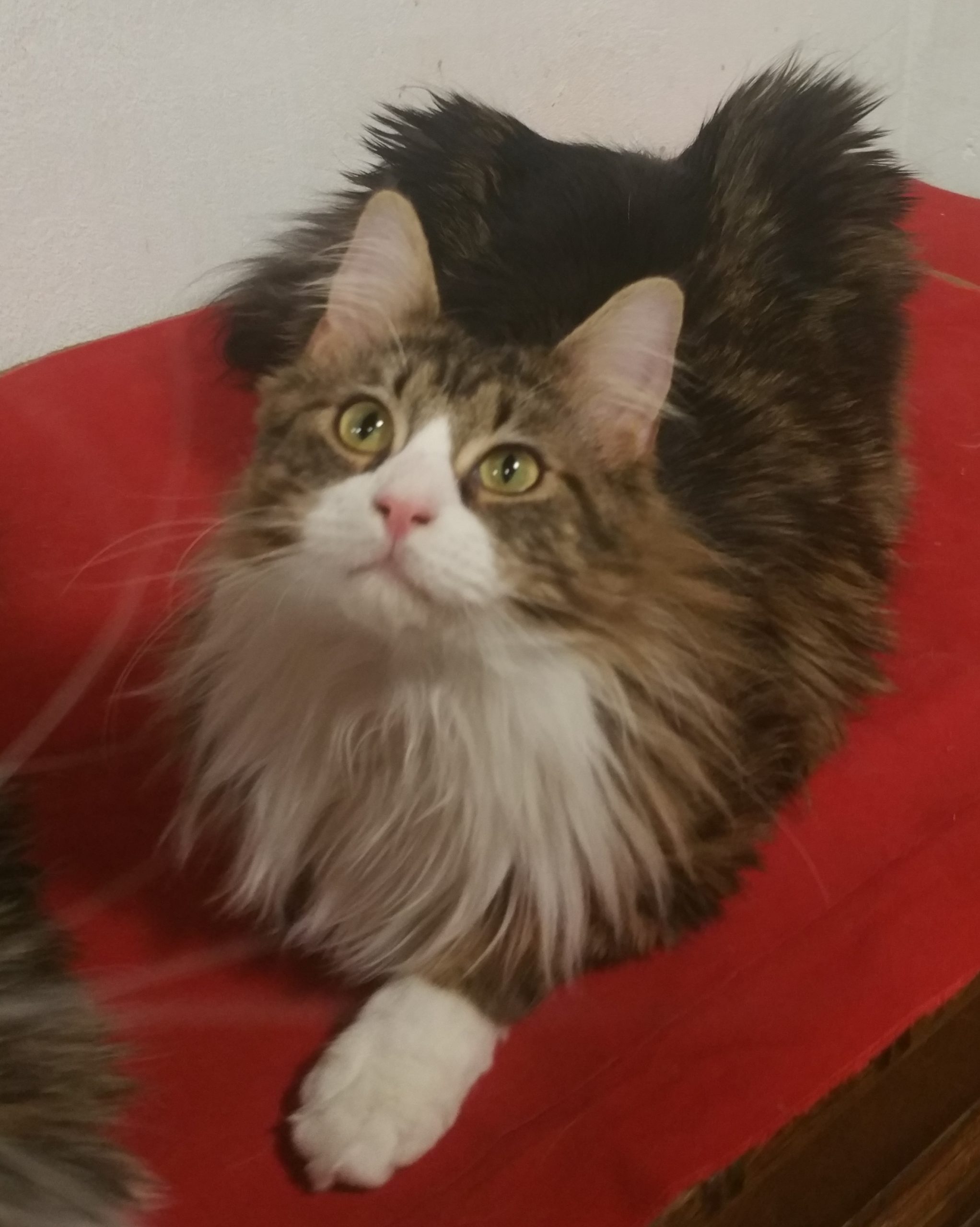Kedves, okos kandúr igazi jó gazdit szeretne, aki neki való életteret biztosít. Igazi „hagyományos ” Maine-Coon. Vadász kvalitása kiváló. Lovasok, állattató teleppel rendelkezők, akik ismerik ennek a fajtának a kiválóságát, előnyben.