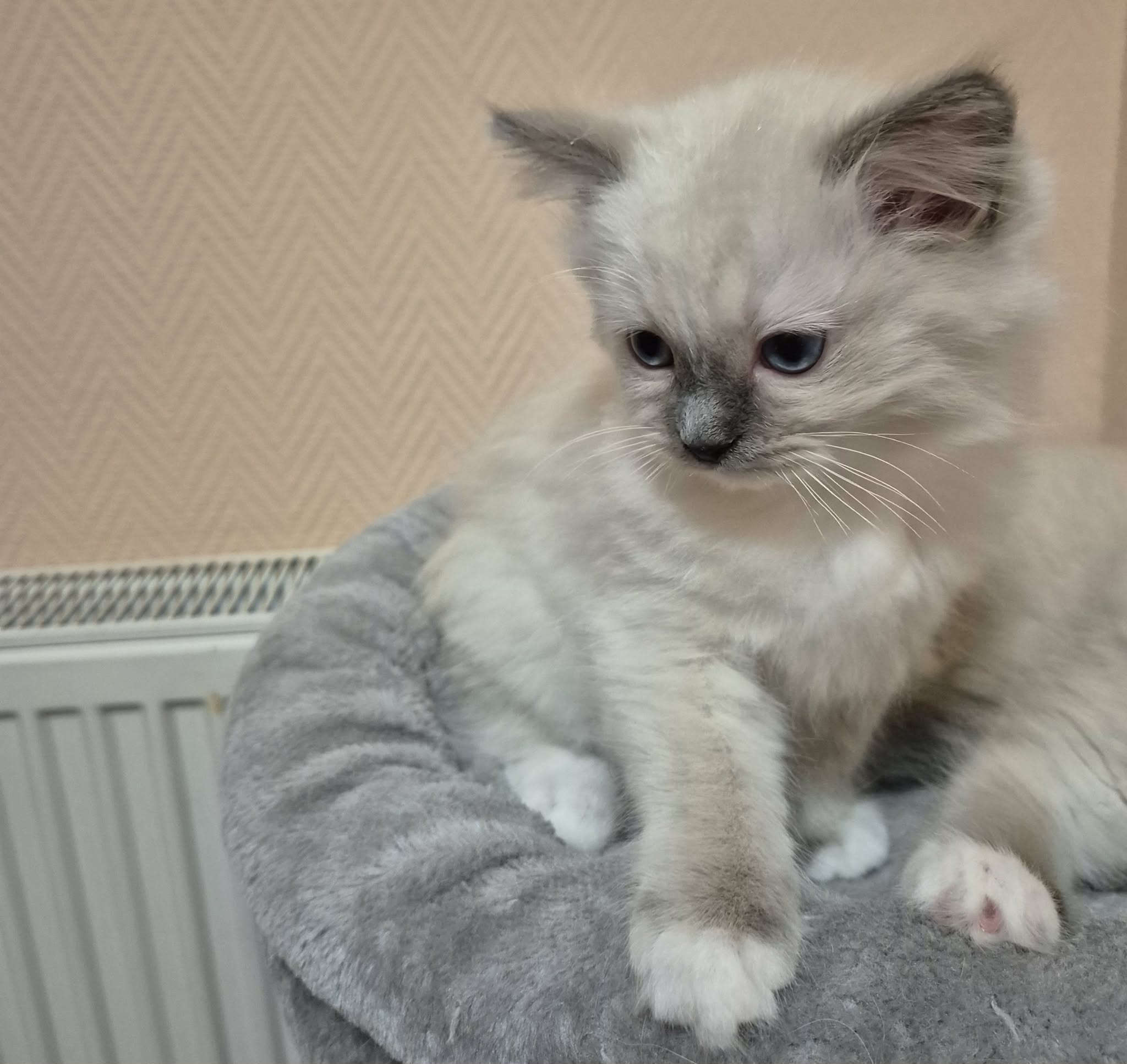 Teo blue mitted, 9 hetes szeretnivaló kis bohóc kandúrka. Mindenre kíváncsi, igazi felfedező, örökmozgó kis szőrgombóc szerető gazdiját várja. Szerződéssel, chippel, törzskönyvvel, 2 alapoltással, többszöri féregtelenítéssel, ivartalanítási kötelezettséggel kerülhet gazdihoz.