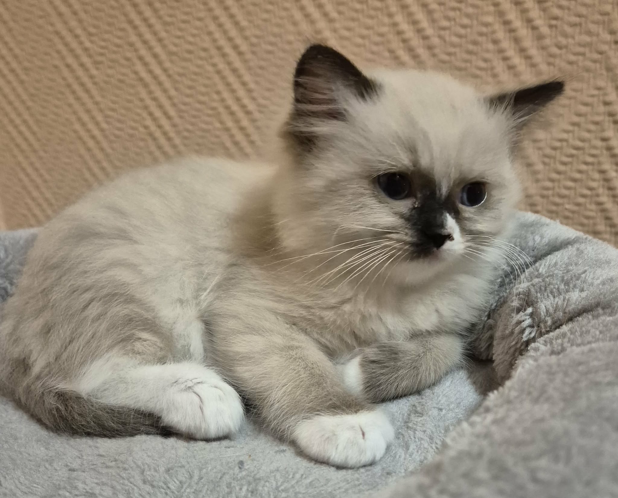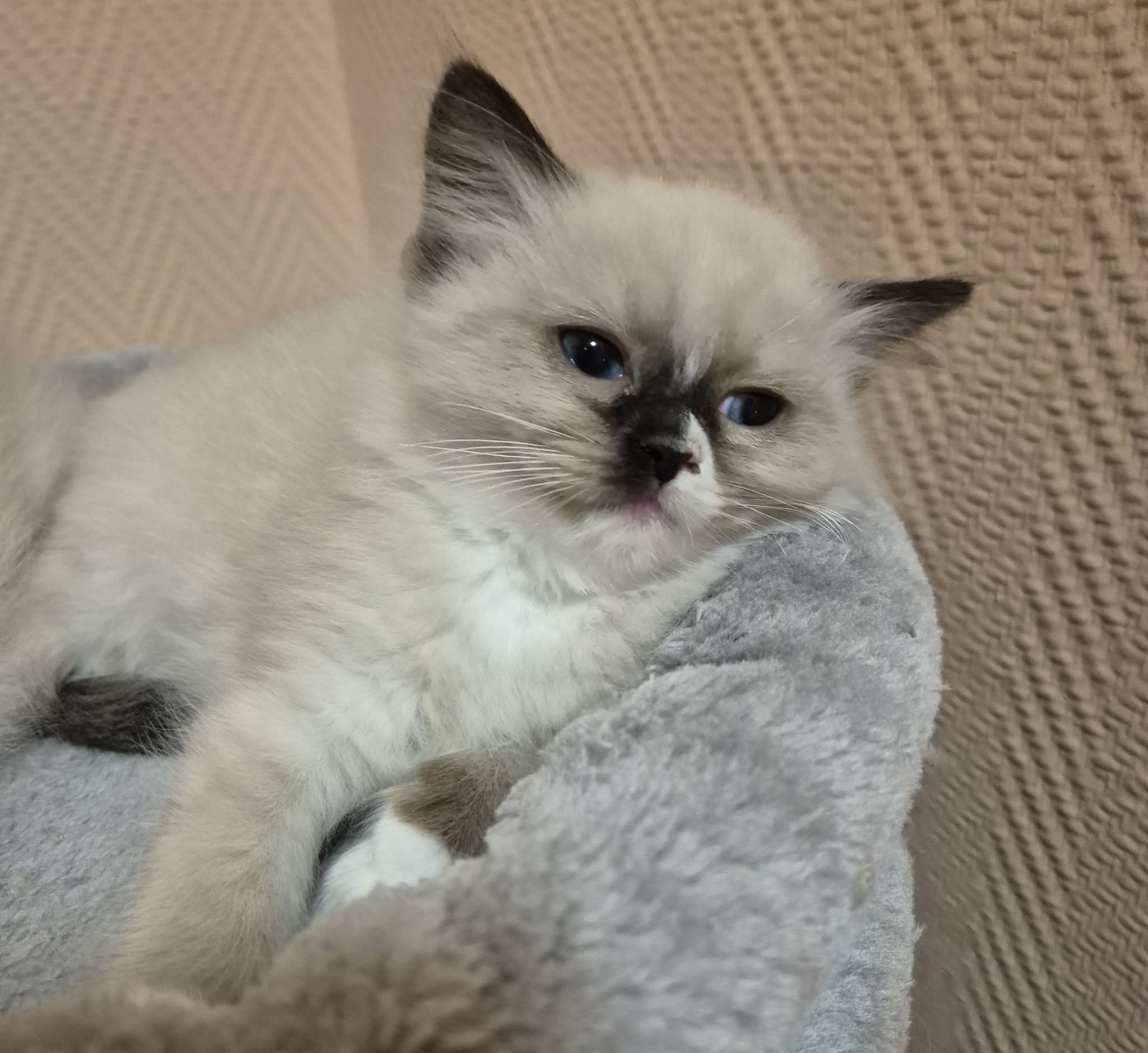 9 hetes csodaszép, kíváncsi kis szeretetgombóc seal mitted ragdoll kislány szerető gazdijára vár. Szerződéssel, chippel, 2 alapoltással, ivartalanítási kötelezettséggel, törzskönyvvel költözhet új otthonába.