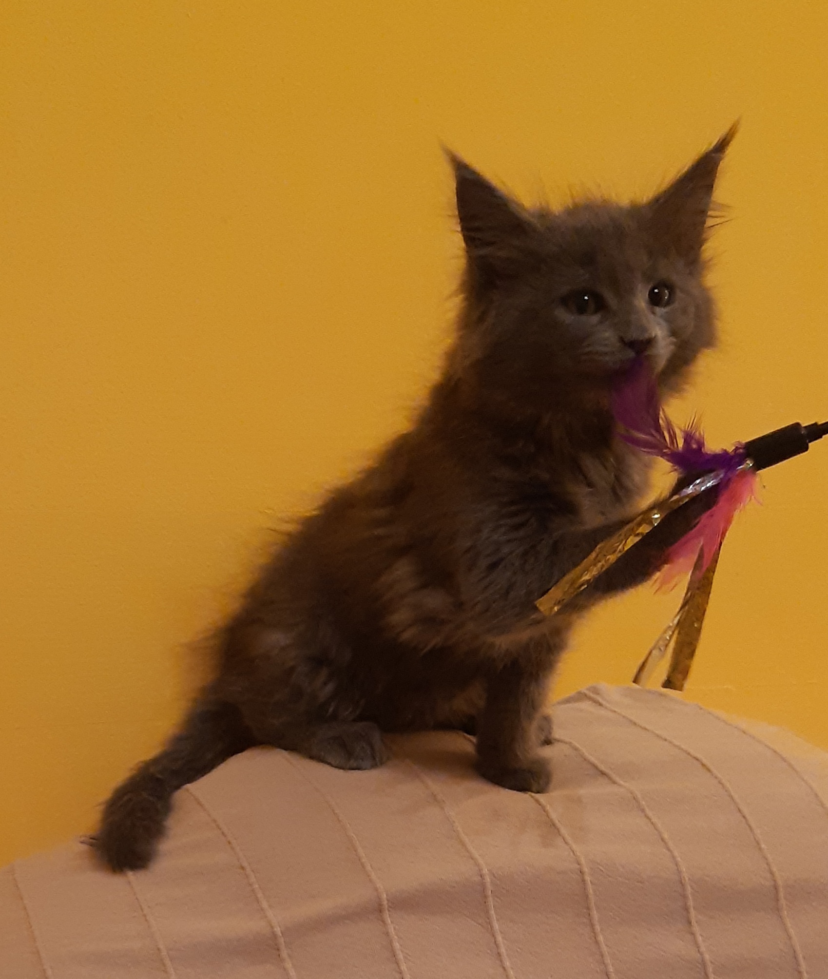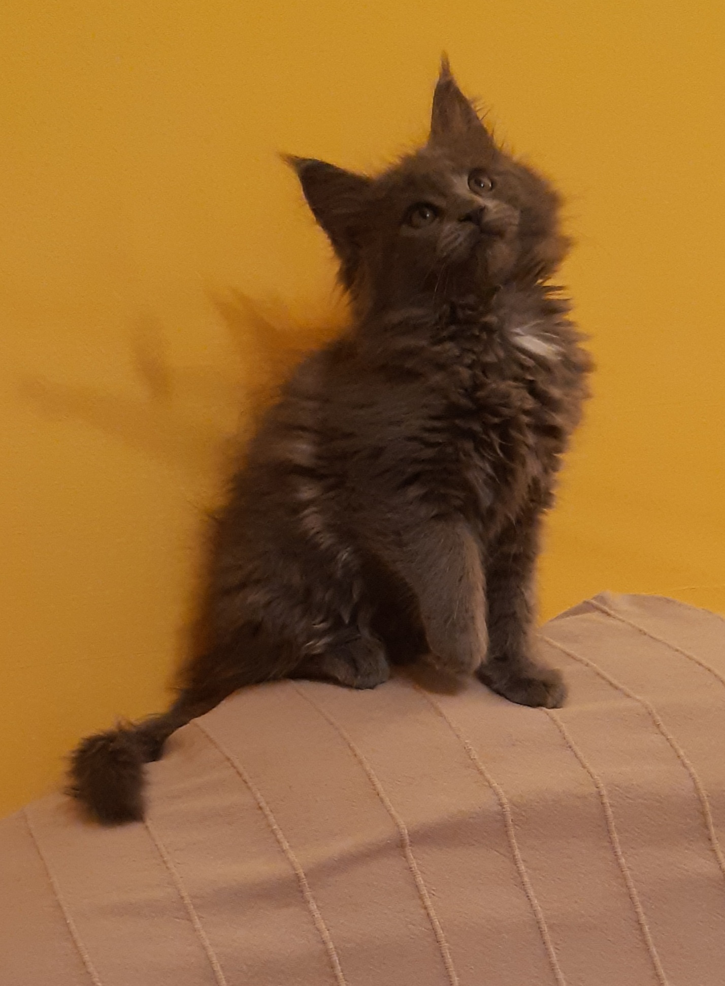 Kedves, dorombolós lányka, mindent megfigyel és tanul. Csodaszép bundája is hordozza kiváló ősei tulajdonságait.