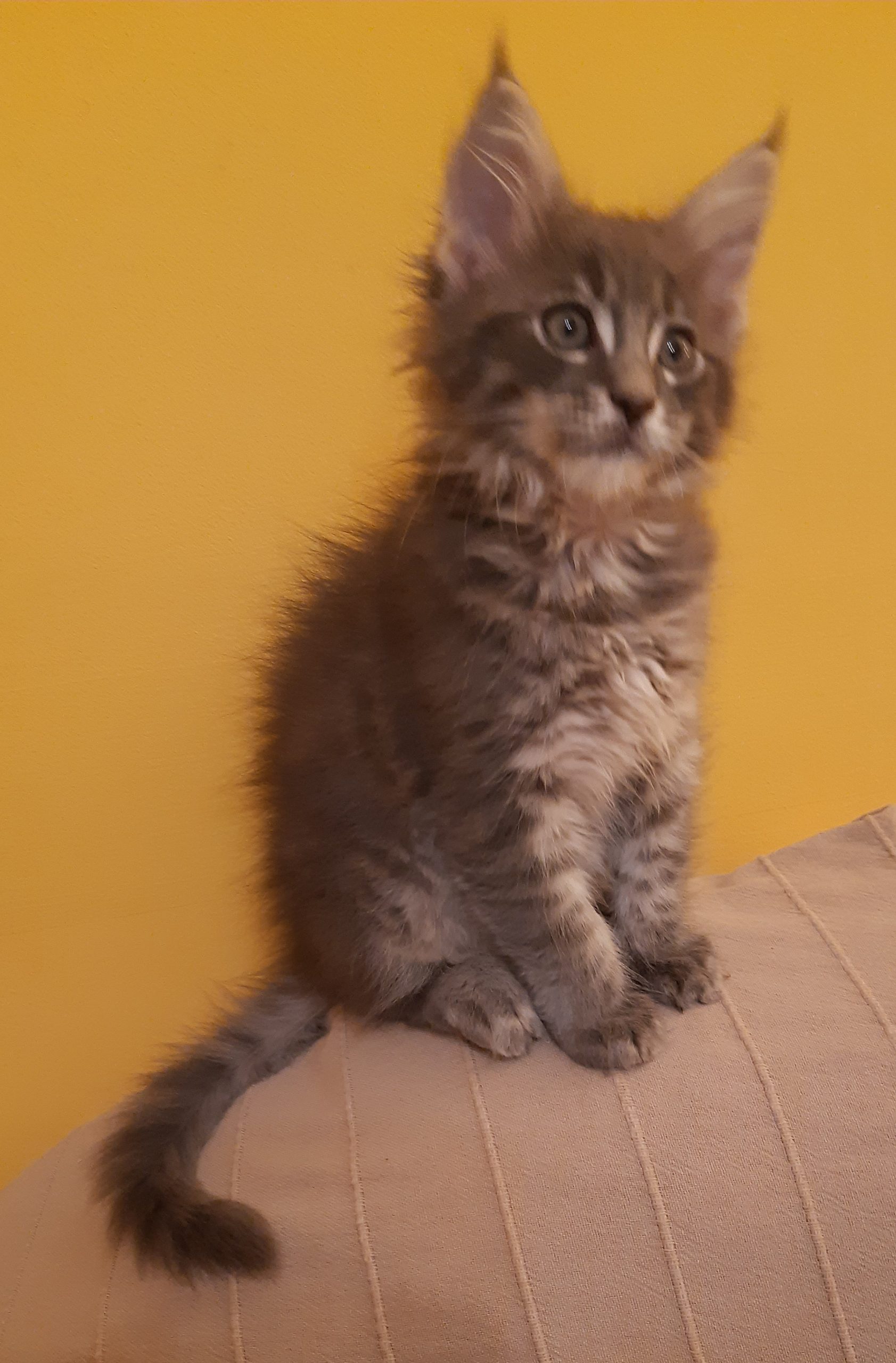 Yvonne minden mozdulata csajos. Okosan kerüli a vehemens támadásokat. Figyelmét hosszan lekötik a zörgő kis labdák, gyakran hurcolja játékait a szájában. Kedves,dorombolós, február 9.után költözhet.